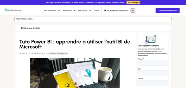 Un autre exemple de contenu evergreen est le tutoriel que l'on trouve sur DataScientest car il fournit des instructions fondamentales sur l'utilisation de Power BI, un outil de Business Intelligence largement utilisé. Ce type de contenu reste utile sur une longue période, indépendamment des tendances ou des changements mineurs dans les versions logicielles, puisqu'il couvre les concepts de base et les fonctionnalités essentielles de l'outil.