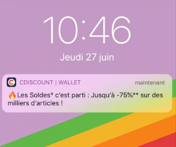 Les notifications push ont pour but d'attirer l'attention du client sur les promotions, les mises à jour, les nouveautés. Elles peuvent convertir les clients ayant cessé d'utiliser l'application sans pour autant la désinstaller. Certaines notifications contiennent également des CTA qui amènent l'utilisateur sur le site internet ou l'application de la marque.