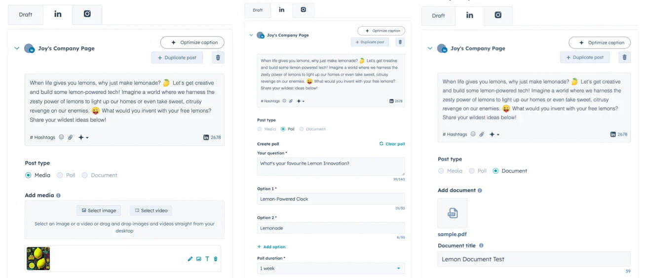 La création et personnalisation du contenu nécessite de sélectionner le type de publication : Média, Sondage ou Document. Le contenu se rédige dans la zone « Que souhaitez-vous partager avec votre réseau ». L'ajout de médias (images, vidéos) s'effectue si nécessaire, ainsi que l'intégration de mentions (@) de pages d'entreprise ou profils personnels. L'optimisation du contenu avec des hashtags pertinents complète cette étape. Les stratégies de marketing de contenu sur LinkedIn permettent d'améliorer significativement l'engagement des publications programmées.