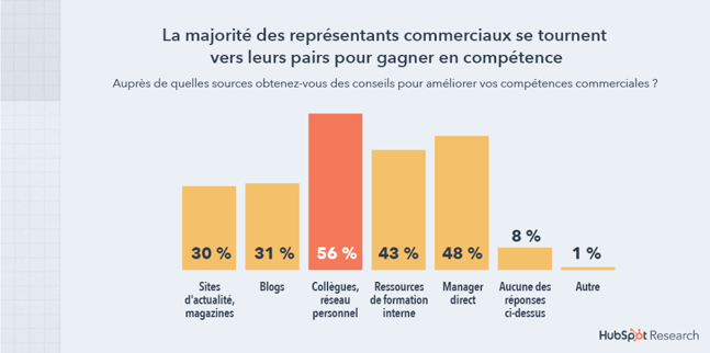 Par exemple, dans le cas de HubSpot, chaque salarié, quelle que soit son ancienneté, se voit attribuer un mentor lorsque son rôle change. Commerciaux expérimentés, ces mentors assistent à des appels et interviennent en cas de question épineuse. Ils se mettent en retrait à mesure que leurs protégés montent en compétence. Ce système est particulièrement efficace pour tisser des liens entre collègues et encourager le partage d'informations.