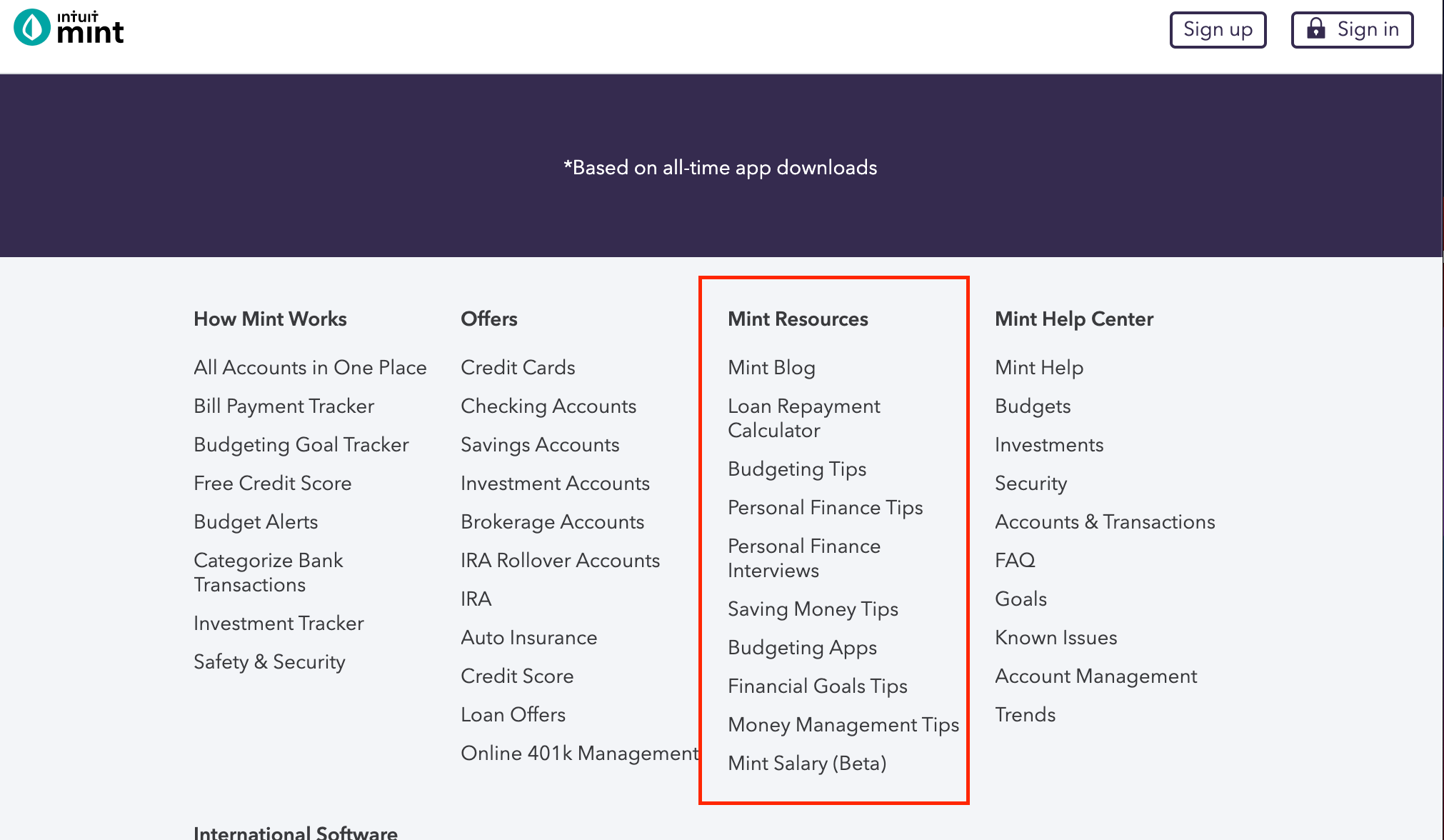 Quels sont les avantages d'un contenu éducatif gratuit sur une plateforme en grande partie gratuite ? Dans ce cas de figure, cela permet de transformer l'opinion que les jeunes diplômés peuvent avoir de la gestion de leurs finances. Une corvée se transforme en expérience positive qui rend leur pouvoir et leur autonomie aux utilisateurs. Ce changement de perspective inspire la gratitude et la confiance de ces jeunes clients fidélisés qui voient leur approche de ce sujet se sophistiquer à mesure qu'ils profitent du contenu de plus en plus élevé proposé par Mint. Le but est de conserver leur loyauté à plus long terme et de les renvoyer vers la maison mère de Mint, Intuit, afin qu'ils en deviennent des clients payants. Cette entreprise américaine développe des solutions de gestion et de comptabilité pour les petites entreprises, les experts-comptables et les particuliers. Valorisée à environ 50 milliards de dollars sur les marchés américains, Intuit possède notamment les services TurboTax (pour les impôts), Mint et Credit Karma.