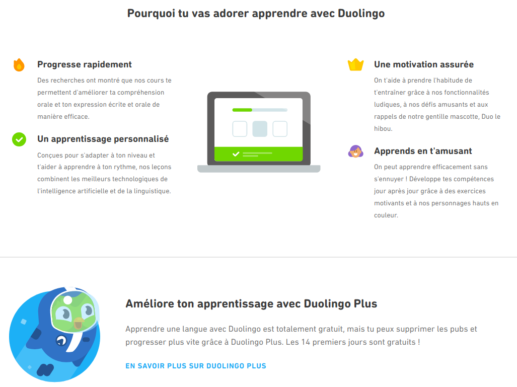 Avec plus de 500 millions d'utilisateurs depuis ses débuts en 2012, la plateforme d'apprentissage de langues Duolingo fidélise ses utilisateurs par le jeu. Pour progresser dans l'une des 40 langues disponibles sur l'application, il faut aller de niveau en niveau sans perdre toutes ses vies. En jouant tous les jours, on gagne de l'xp (expérience) et l'on maintient son streak, c'est-à-dire la série ininterrompue de jours où l'on s'est connecté. La possibilité de défier des amis sur la plateforme participe aussi d'une émulation qui invite à donner le meilleur de soi-même pour avancer dans le jeu et dans son apprentissage.